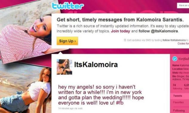 Πρώτη και καλύτερη η Καλομοίρα που μέσω του twitter της μας ενημερώνει για όλες τις λεπτομέρειες του γάμου και τις προετοιμασίες που έχει κάνει μέχρι στιγμής. Η ίδια είχε γράψει στο twitter της πόσο χαρούμενη είναι και με πόση αγωνία περιμένει τη μεγάλη στιγμή.